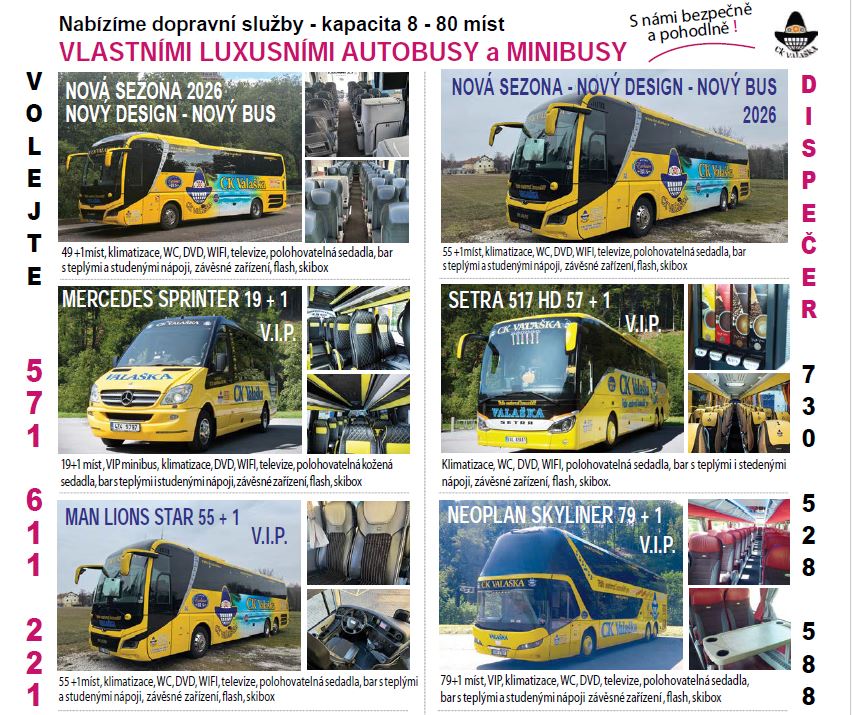 Mimo letní sezónu nabízíme dopravu našimi vlastními autobusy na nejrůznější akce