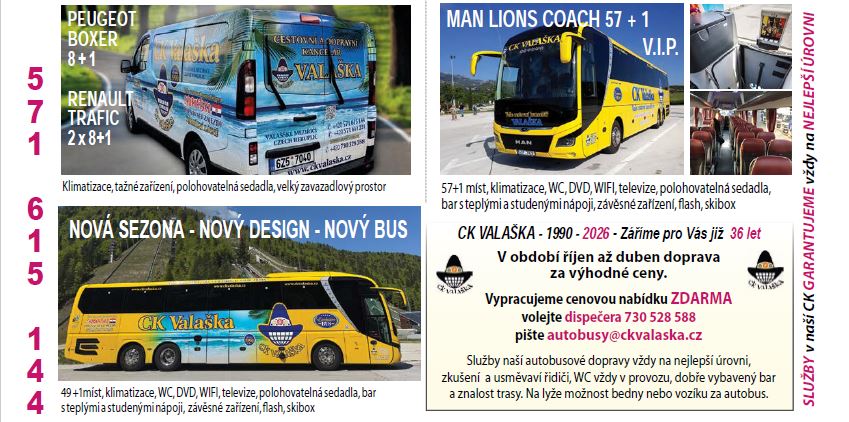 - Dispečer osobní dopravy, tel. 730 528 588 autobusy@ckvalaska.cz